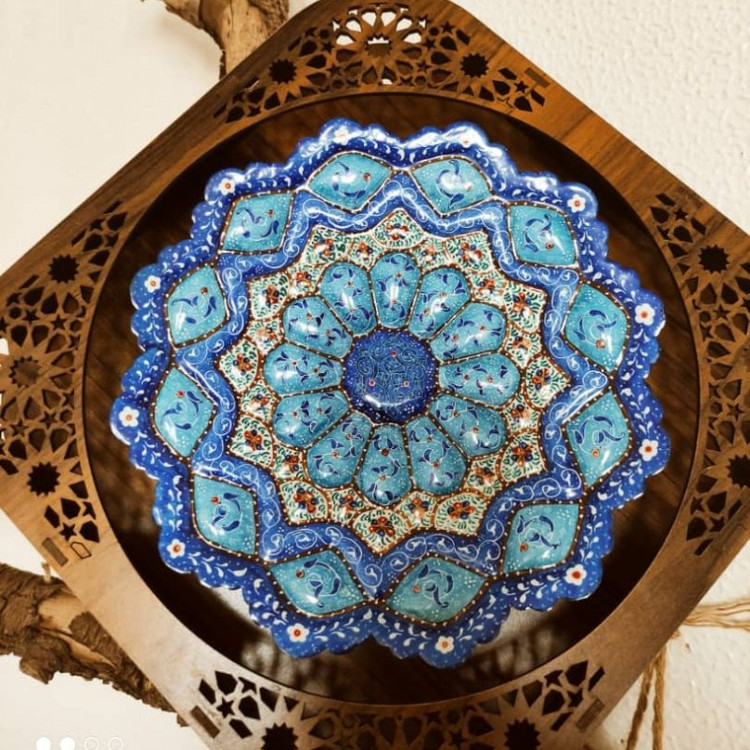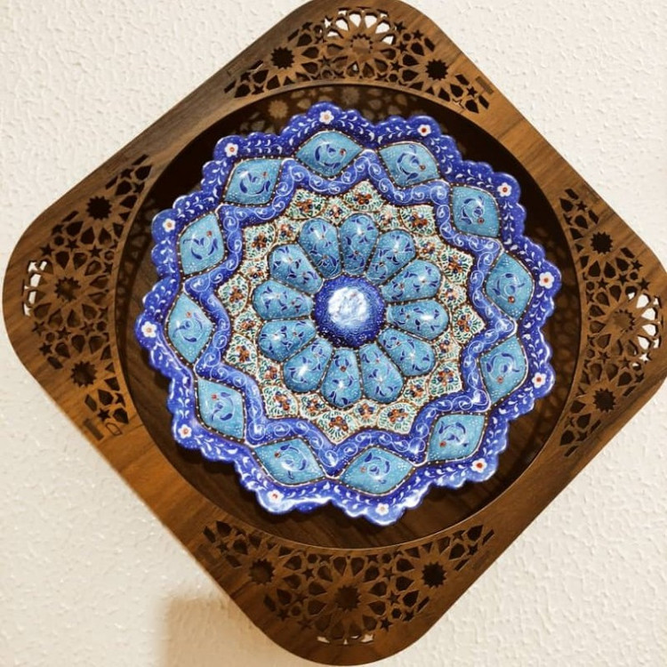 🔸جنس قاب ازMDF که بابرش لیزری به صورت مشبک طراحی شده و بشقاب ازمس می باشد.